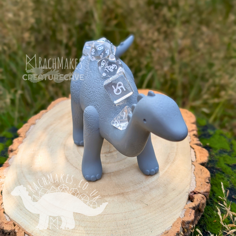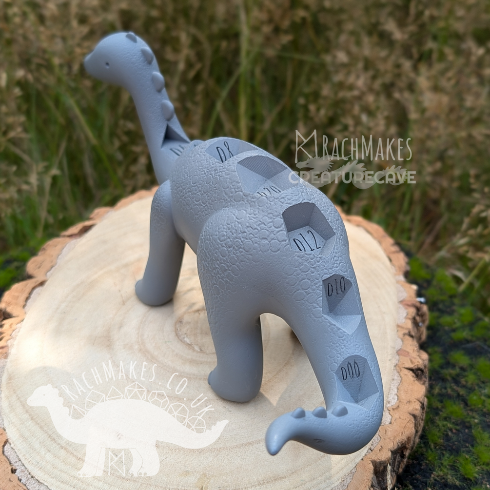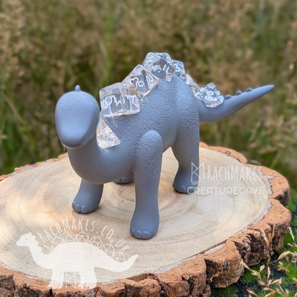 Just like Dinosaurs, dice can come in many shapes and sizes! This Stegosaurus Dienosaur had been tested with 12 different sets of dice, but there is no guarantee that your dice will fit, so you may need to rescale the project to fit your dice. This Stegosaurus Dienosaur has been modelled based on the following dimensions: